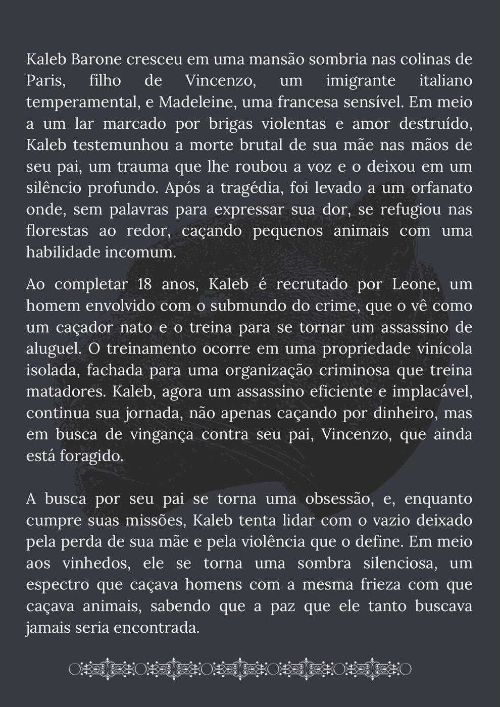 › Nasceu na França, mas vivia dividido entre França e Itália, por causa dos pais.› Não gosta quando usam seu primeiro nome, Lucien.› Aos seis anos perdeu a fala ao testemunhar o assassinato de sua mãe e desde então não emite nenhum ruído por escolha própria.› Aos seis anos foi para um orfanato na Itália, porém não permaneceu por muito tempo. Ao todo ele frequentou dois orfanatos e um reformatório — onde cresceu e adquiriu habilidades de caça.› O animal com qual se identifica é a pantera negra.› Aos 18 anos foi morar com o dono de uma vinícola conceituada na França e lá aprendeu seu ofício.› Sua mãe foi a única pessoa que ele amou verdadeiramente em sua vida, diante isso, ele a mantém perto de si por meio da beleza da arte e das filosofias clássicas francesas.› Obstinado, obsessivo, rancoroso, vingativo, vazio, silencioso, melancólico, poeta e frio são alguns dos adjetivos que o compõe.